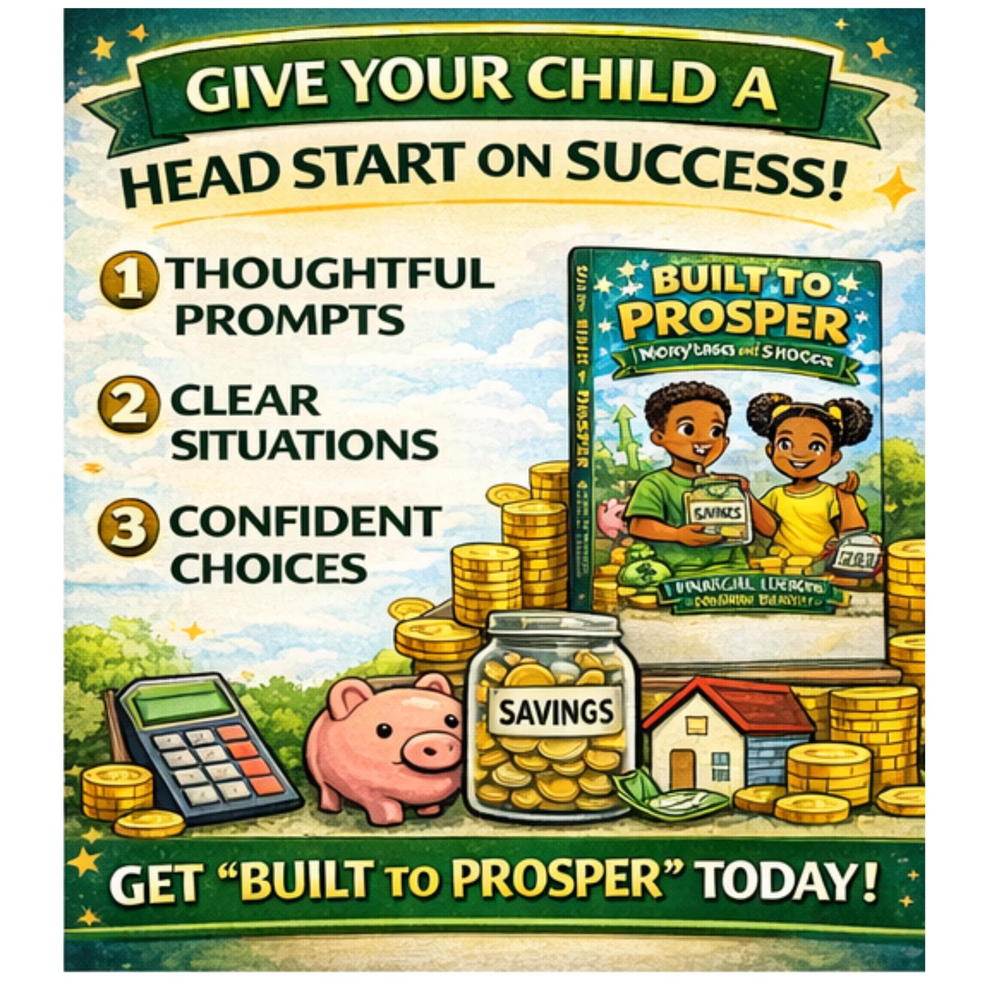 Help your child build strong money habits early with Built to Prosper — a thoughtfully designed financial literacy coloring and activity book for ages 6–10.